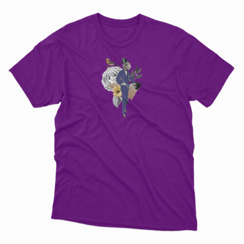 Ανακαλύψτε το ανδρικό t-shirt σε έντονο μωβ χρώμα με μοναδικό σχέδιο άνδρα με κεφάλι λιονταριού και λουλούδια. Ιδανικό για μοντέρνο και καλλιτεχνικό στυλ, προσφέρει άνεση και ξεχωριστή αισθητική για κάθε casual εμφάνιση.